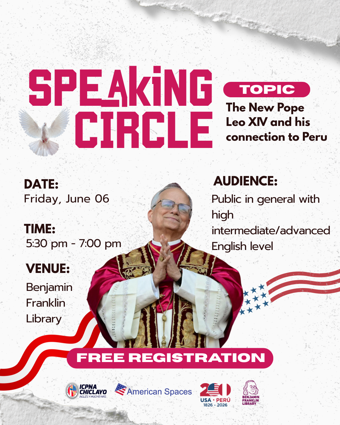 📢 Let’s talk about the new Pope… and Peru! Join us for a dynamic session of our Speaking Circle where we’ll explore the election of Pope Leo XIV and his connection to Peru - including how this historic event could impact our community here in Chiclayo 🇵🇪 🎯 Level: Intermediate to Advanced English 💬 Free & open to the public […]