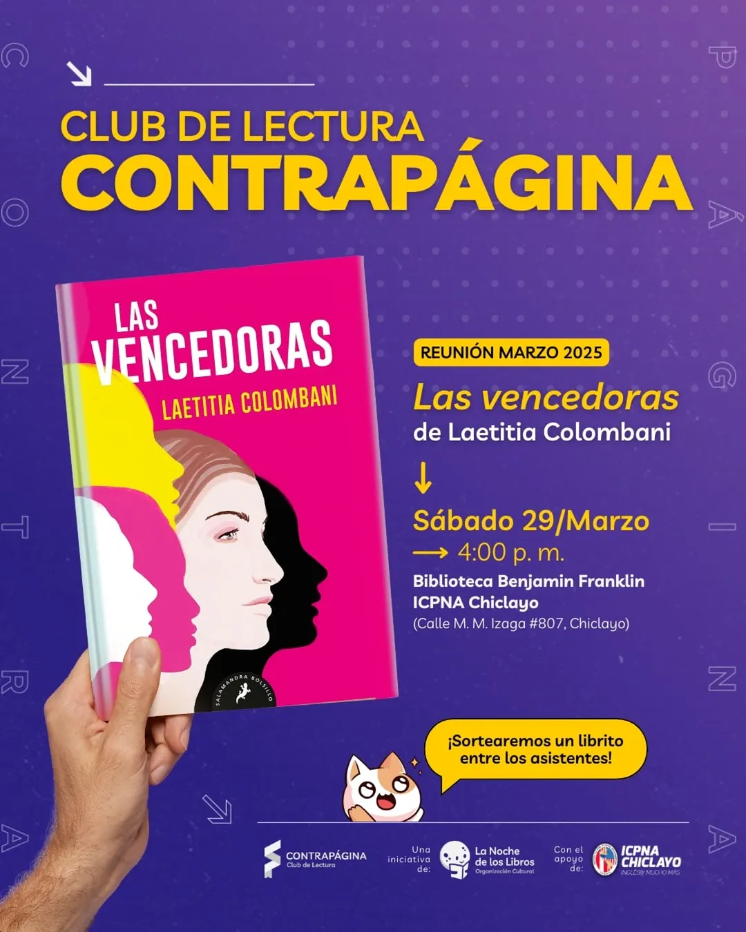 El club donde los libros nos hacen libres 🤘 ¡Hola lectores! 🤩 Este mes, en nuestro club de lectura Contrapágina leeremos y conversaremos sobre 📕📘 "Las vencedoras" de Laetitia Colombani 📘📕 ¿Cuándo? ¿Cómo? ¿Dónde? 😱 🔸 El sábado 29 de marzo 🔸 A las 4:00 p.m. 🔸 En la Biblioteca Benjamin Franklin – ICPNA Chiclayo. Para participar de la reunión, […]