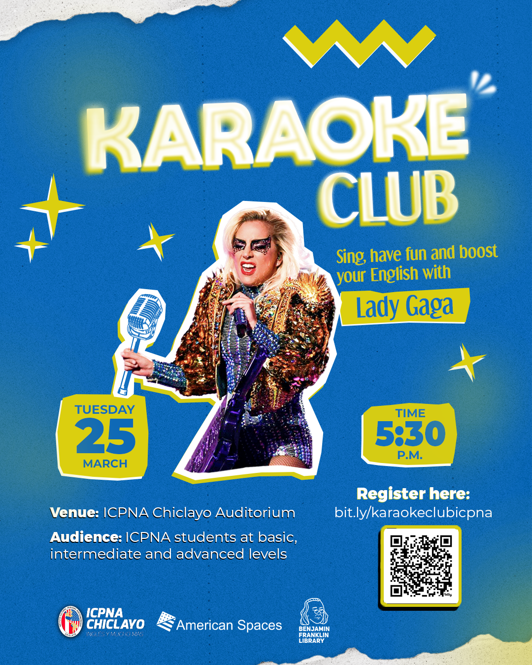 ¡Es hora de brillar como un little monster! 🕶️🔥 Únete a nuestra sesión de karaoke dedicada a la inigualable Lady Gaga y canta sus mayores éxitos, desde Bad Romance hasta Shallow. Una noche llena de música, energía y mucha diversión. 📅 Fecha: Martes 25 de Marzo. 🕐 Hora: 5:30 p. m. 📍 Lugar: Auditorio del ICPNA Chiclayo. 🗣️ Audiencia: Estudiantes […]