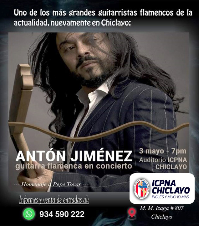 PARTICIPAN: Antón Jiménez  - Concertista Español Karim Limo - Soprano Ensamble de Guitarra del Cuerpo Médico del Hospital “Almanzor Aginaga Asenjo” PARTICIPACIÓN ESPECIAL: Representantes de la Asociación de Sordos de Lambayeque Desde España vuelve al ICPNA CHCLAYO el extraordinario Concertista de Guitarra Flamenca Antón Jiménez. El espectáculo incluirá la participación especial de representantes de la Asociación de Sordos de Lambayeque ofreciendo […]