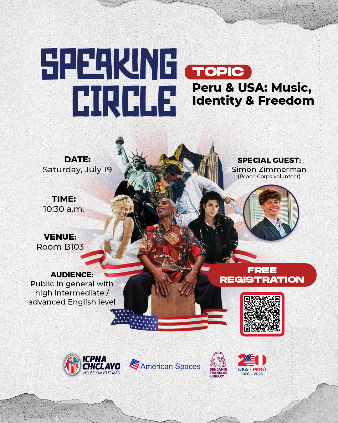 Join our speaking circle and practice your English! Let's talk about how music shape our national identity. It's going to be a bilingual celebration of culture, rhythm & expression. 🔴 Open to general public with high intermediate/advanced English level 🔴 Free registrations: https://bit.ly/SpeakingCircles2025 🔴 Watch this video and get ready for the discussion: https://youtu.be/kXQn_LtGeDc?si=JxdHd3ozaTdi3huE