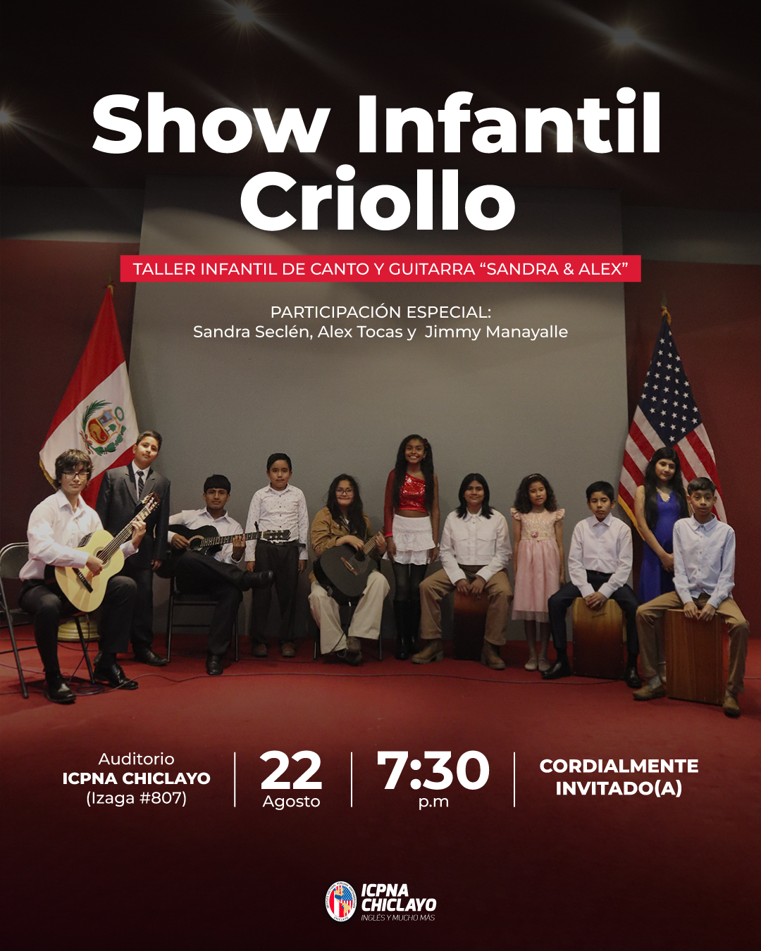 ✨ Sandra Seclén y Alex Tocas siguen consolidándose como dos alternativas para la formación artística de niños y jóvenes Lambayecanos a través de su taller de Canto y Guitarra. ✨ En esta ocasión vuelven a generar expectativa con una nueva muestra artística con la participación de un grupo de sus dirigidos con un repertorio de música Peruana. 🇵🇪 Este espectáculo […]